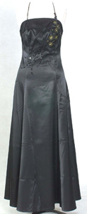 サテン生地。スカートに大きな花柄のビーズ刺繍。